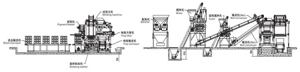 用途:生產(chǎn)各種外墻砌塊、內(nèi)墻砌塊、花墻砌塊、樓板塊、護(hù)堤塊、連鎖塊、路緣石等砌塊。增加面料裝置可生產(chǎn)彩色路面磚。